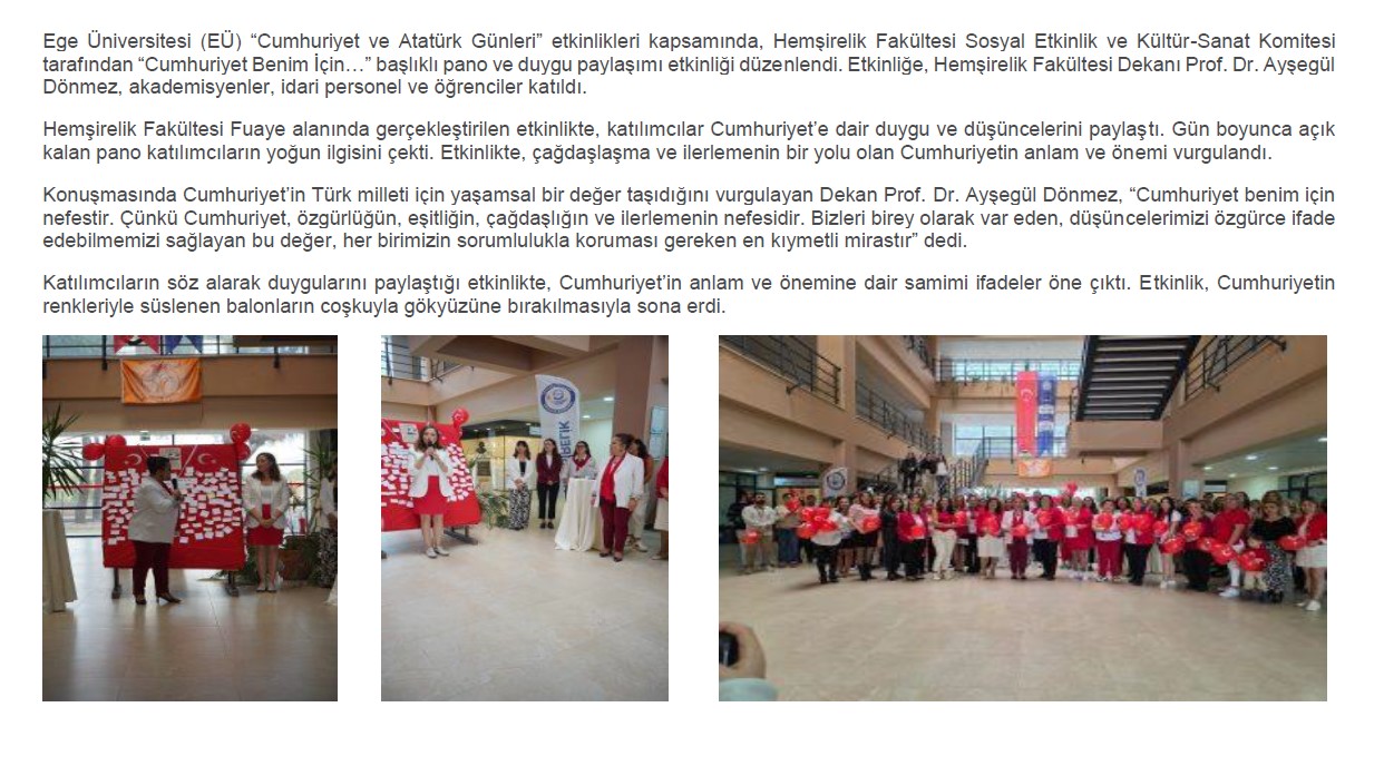 EÜ Hemşirelik Fakültesinde balonlar Cumhuriyet için havalandı Ege Ajans Haberi