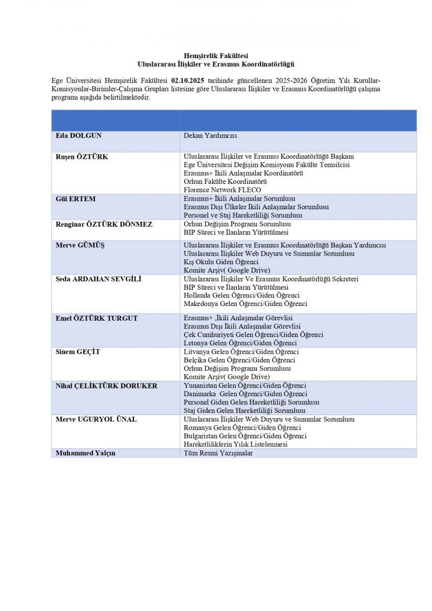 - Eğitim Programında Görev Alan Öğretim Elemanlarının Görev ve Sorumlulukları